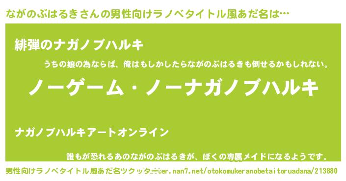 | ヒーロー風カッコイイあだ名 | 『慈愛の使者ながのぶはるき』 |