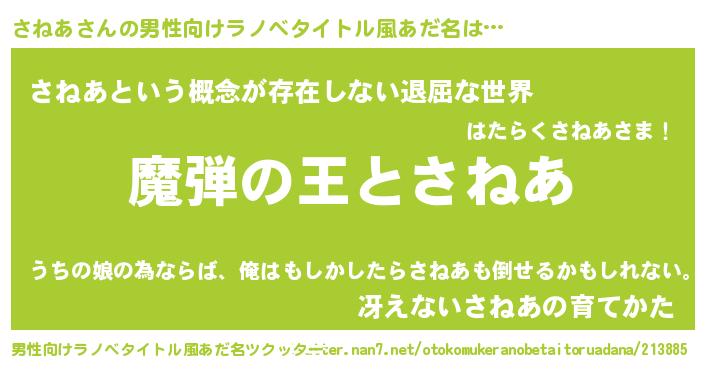 | 意味不明あだ名 | 『住所不定無職さねあ(7歳)』 |