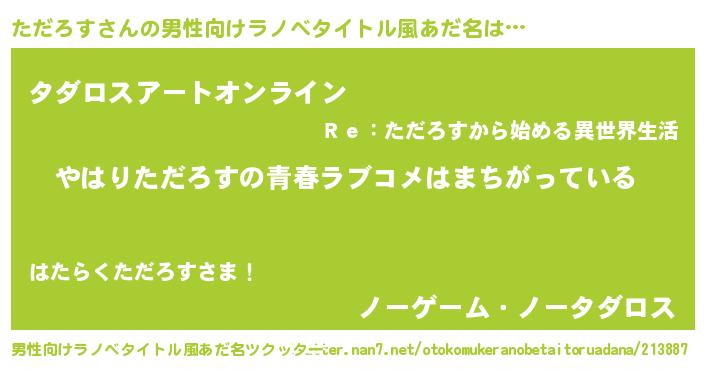 | 女子向けラノベタイトル風あだ名 | 『ただろすの雑貨屋さん』 |