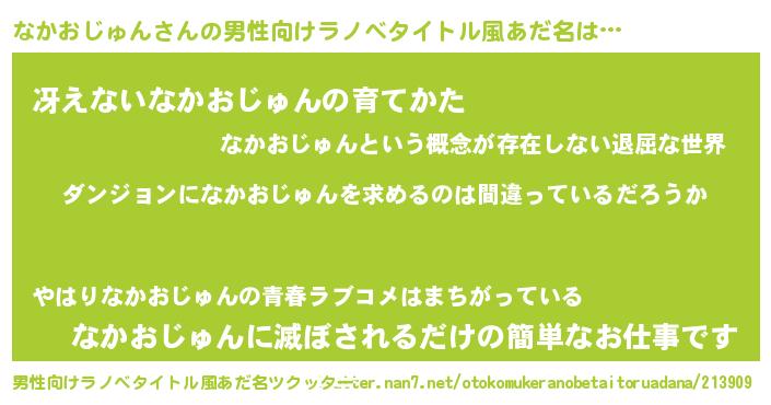 | 女子向けラノベタイトル風あだ名 | 『なかおじゅんは平凡を望む』 |
