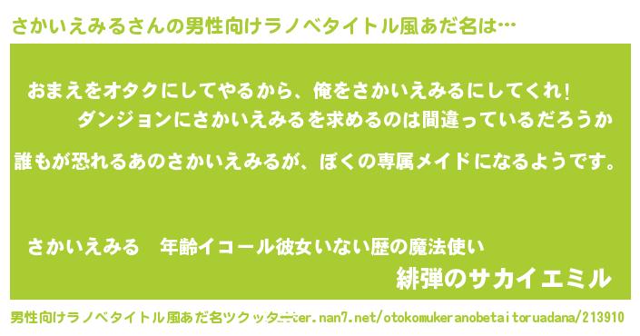 | ヒーロー風カッコイイあだ名 | 『ネオサカイエミル』『魔戒騎士サカ』 |