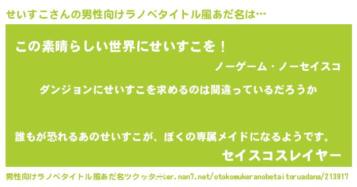 | 意味不明あだ名 | 『とにかく怪しいせいすこ』 |