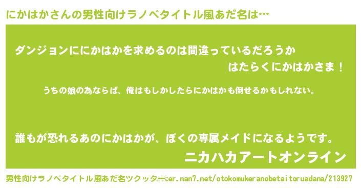 | ヒーロー風カッコイイあだ名 | 『ウルトラにかはかマン』『暗黒騎士ニカ』 |