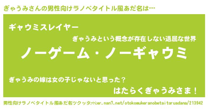 ぎゃうみさんの男性向けラノベタイトル風あだ名をツクッター!
