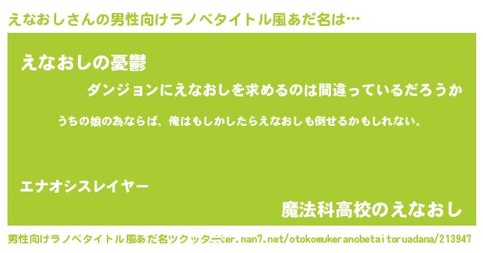 | 胡散臭い通販商品みたいなあだ名 | 『運命の人と巡り会える高級そうな絵画…その名も「えなおし」』 |