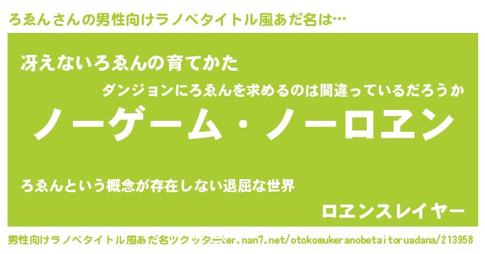 | ヒーロー風カッコイイあだ名 | 『慈愛の使者ろゑん』『黄金騎士ロヱ』 |
