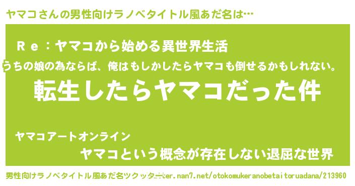 | 胡散臭い通販商品みたいなあだ名 | 『テレビで話題の高麗人参…その名も「ヤマコ」』 |