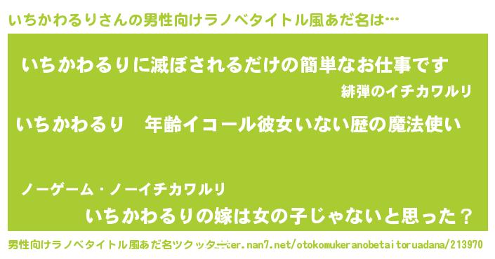 | 女子向けラノベタイトル風あだ名 | 『いちかわるりの玉の輿計画!』 |