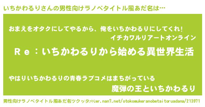 | 女子向けラノベタイトル風あだ名 | 『いちかわるりストレイドッグス』 |