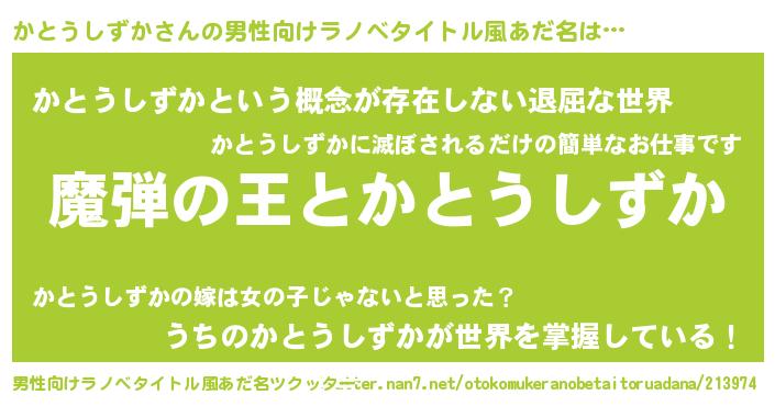 | 女子向けラノベタイトル風あだ名 | 『乙女ゲームの破滅フラグしかない悪役かとうしずかに転生してしまった…』 |