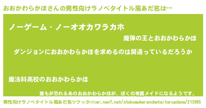 | 意味不明あだ名 | 『とにかく怪しいおおかわらかほ』 |