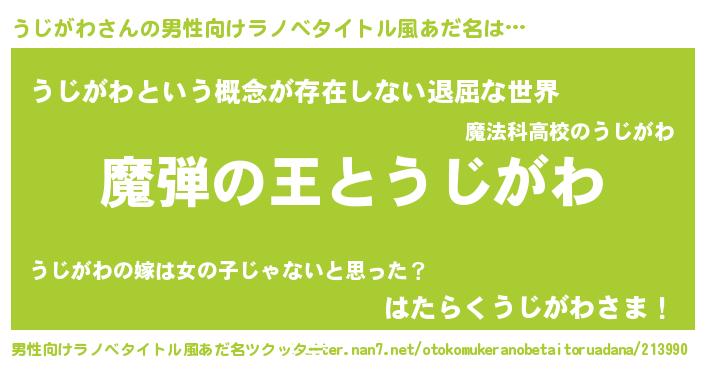 | ヘコむあだ名 | 『うじがわ(爆)』『うじお』 |