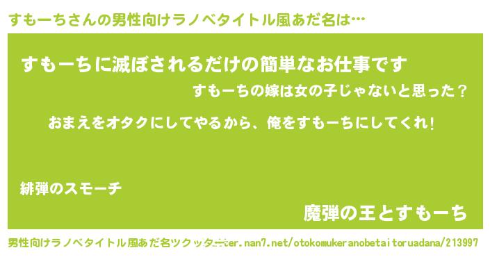 | 女子向けラノベタイトル風あだ名 | 『すもーち夫妻のなれそめ』 |