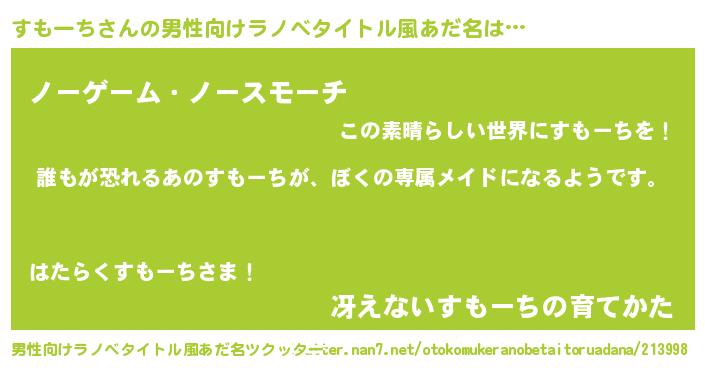 | 意味不明あだ名 | 『永久保存すもーち』『自称すもーち』 |