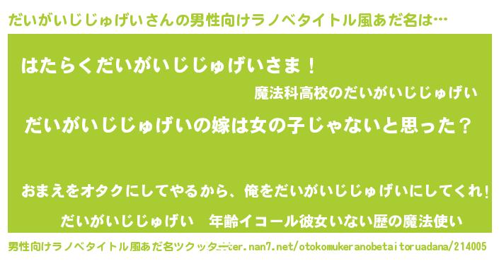 | 欧米人風あだ名 | 『ウサインだいがいじじゅげい』 |