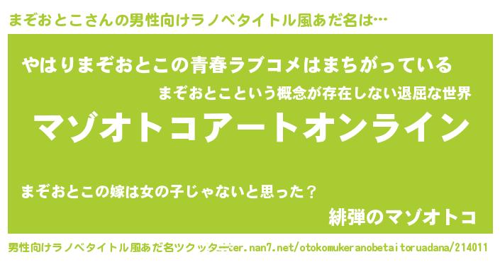 | ファンタジー風あだ名 | 『マゾフェル』『エターナルマゾオトコー』 |
