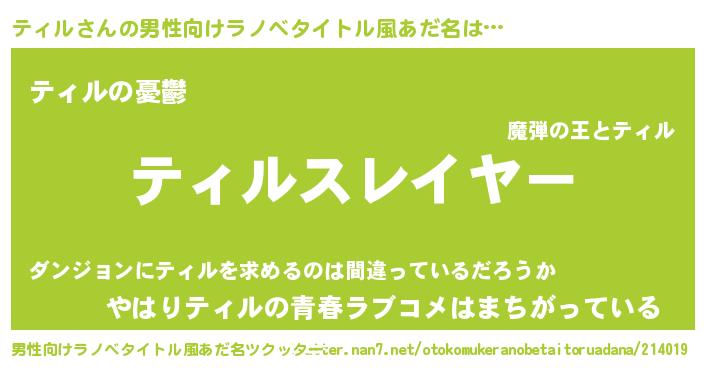 | 胡散臭い通販商品みたいなあだ名 | 『必ず成功する水晶球…その名も「ティル」』 |