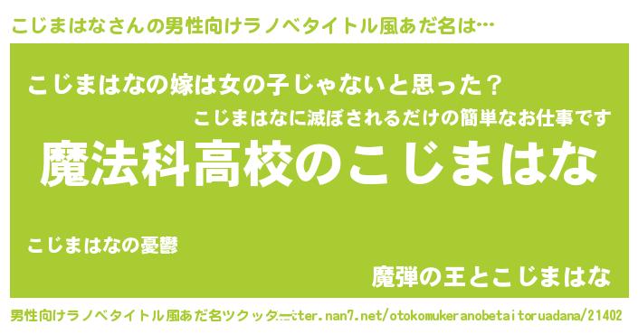 | 女子向けラノベタイトル風あだ名 | 『こじまはななんてお断りですっ。』 |