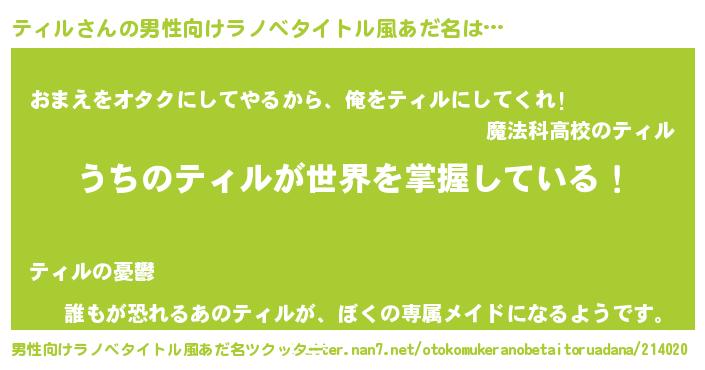 | ヘコむあだ名 | 『ティル(遠い目)』『ティもー』 |