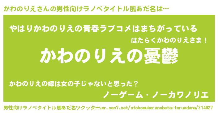 | 女子向けラノベタイトル風あだ名 | 『かわのりえ姫と円卓の騎士』 |