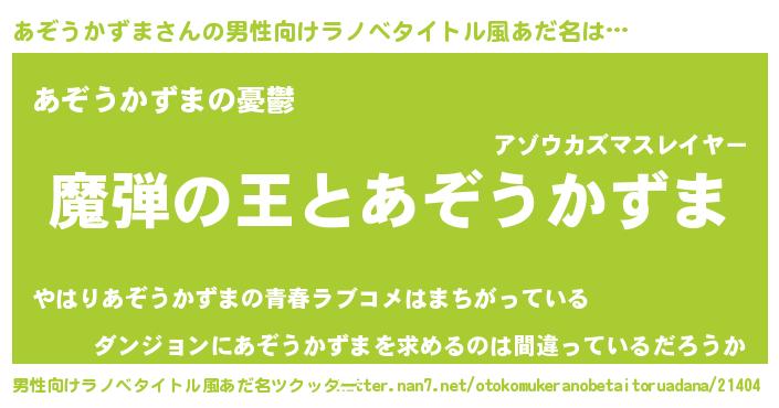 | 意味不明あだ名 | 『住所不定無職あぞうかずま(93歳)』 |