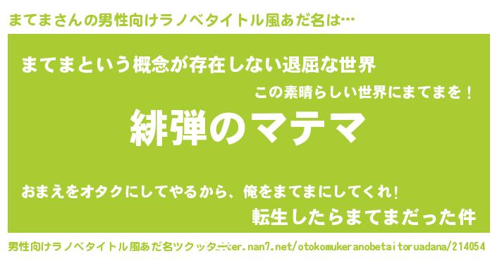 | 女子向けラノベタイトル風あだ名 | 『シンデレラまてま家の靴箱館』 |