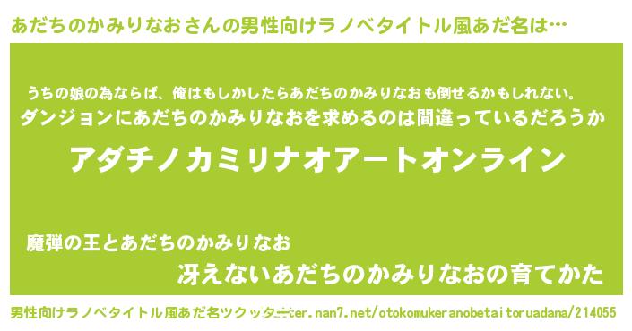 | 胡散臭い通販商品みたいなあだ名 | 『億万長者になれる霊験あらたかなお札…その名も「あだちのかみりなお」』 |