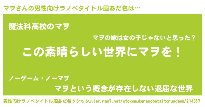 | ポケモン風あだ名 | 『マーヲイ』『マヲセウス』『ヒマヲ』 |