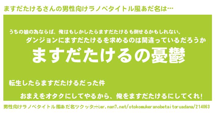 | 女子向けラノベタイトル風あだ名 | 『(仮)ますだたけるのやんごとなき事情』 |