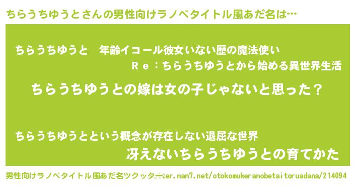 | 女子向けラノベタイトル風あだ名 | 『ちらうちゆうと様がみてる』 |