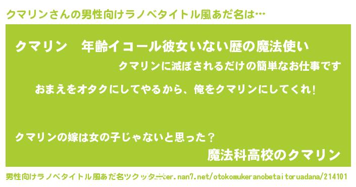 | ファンタジー風あだ名 | 『クインクット』『ユリクマヴァット』 |