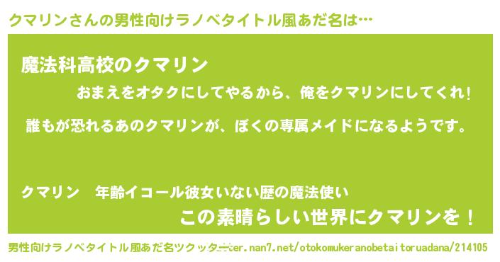 | 女子向けラノベタイトル風あだ名 | 『異世界でカフェクマリンを開店しました。』 |