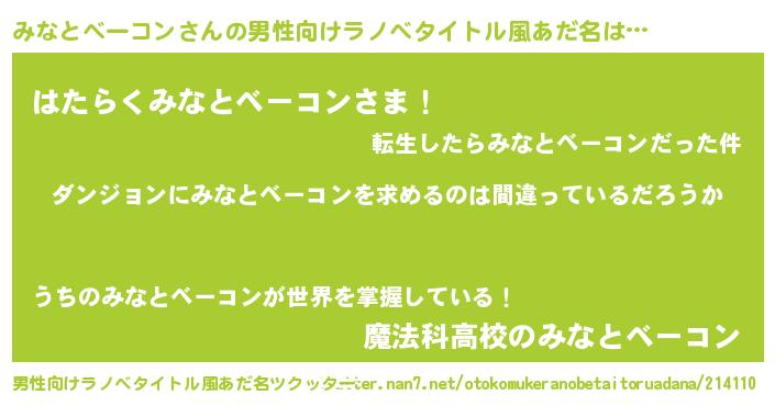 | ヘコむあだ名 | 『みなお』『みなとベーコン(笑)』 |