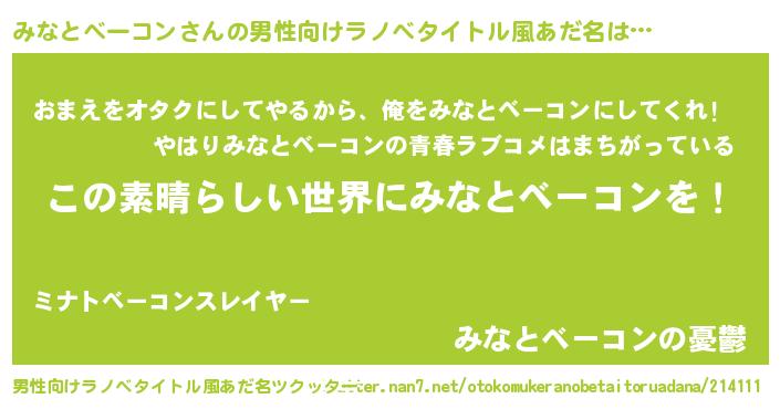 | 意味不明あだ名 | 『住所不定無職みなとベーコン(2歳)』 |