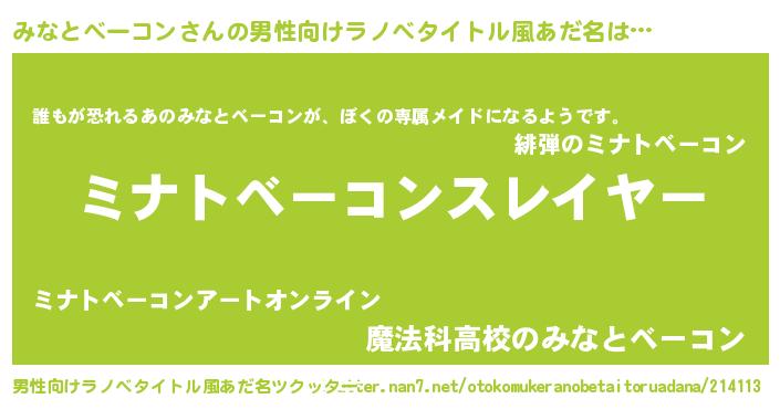 | ヒーロー風カッコイイあだ名 | 『ネオミナトベーコン』『魔戒騎士ミナ』 |