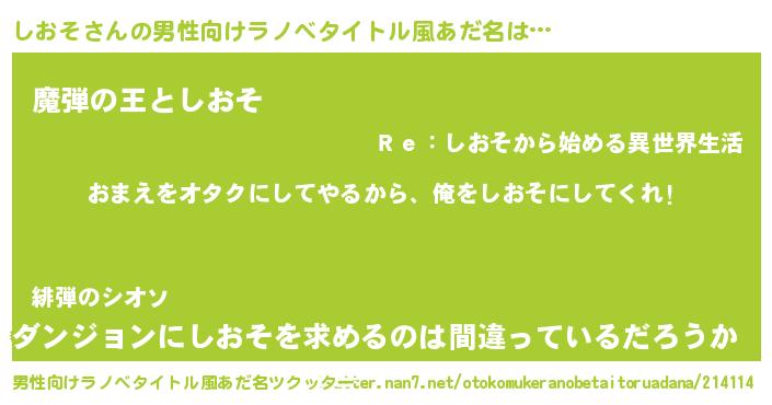 | 女子向けラノベタイトル風あだ名 | 『しおそ夫妻のなれそめ』『闇のしおそ』 |