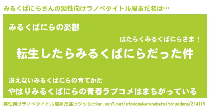 | ヘコむあだ名 | 『みるっふぃ~』『つくし』 |