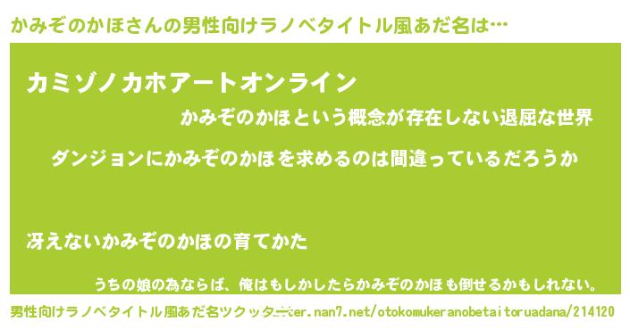 | 女子向けラノベタイトル風あだ名 | 『かみぞのかほは平凡を望む』 |
