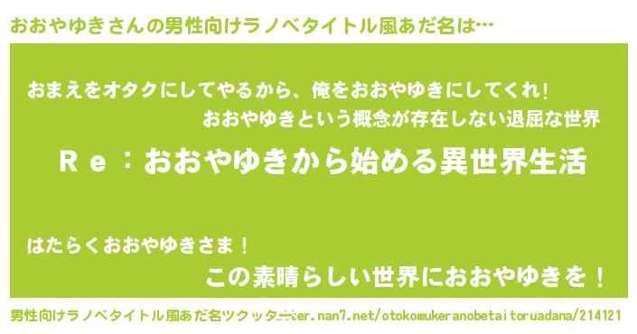 | 意味不明あだ名 | 『自称おおやゆき』『永久保存おおやゆき』 |