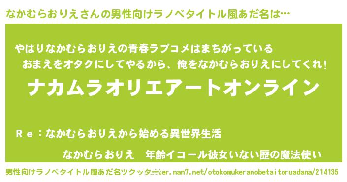 | 女子向けラノベタイトル風あだ名 | 『なかむらおりえ姫と円卓の騎士』 |