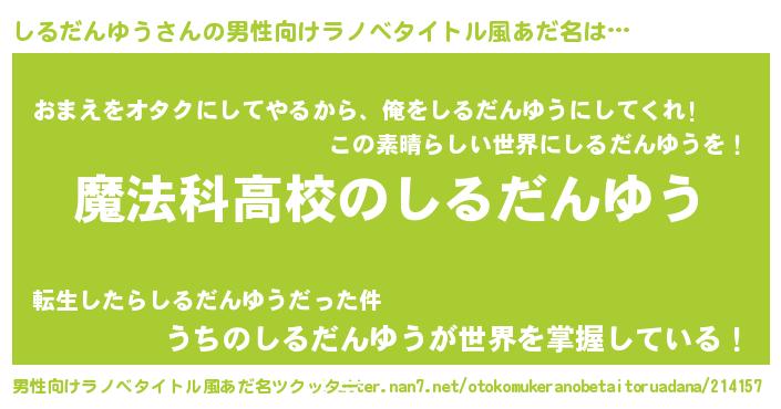 | 女子向けラノベタイトル風あだ名 | 『しるだんゆうなんてお断りですっ。』 |
