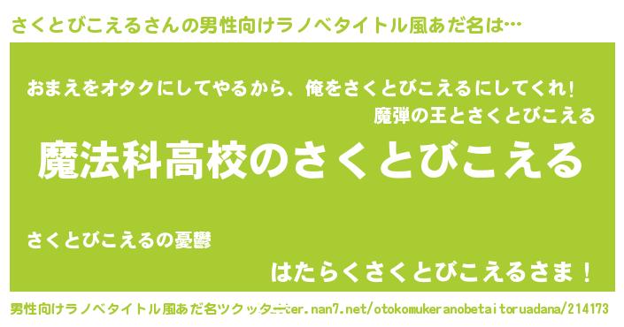 | 女子向けラノベタイトル風あだ名 | 『さくとびこえるなんてお断りですっ。』 |