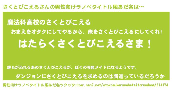 | 意味不明あだ名 | 『自称さくとびこえる』 |