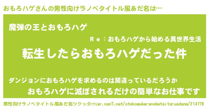 | 胡散臭い通販商品みたいなあだ名 | 『世界中を虜にした100年もののヴィンテージワイン…その名も「おもろハゲ」』 |