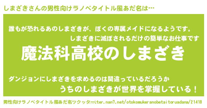 | 意味不明あだ名 | 『自称しまざき』『永久保存しまざき』 |