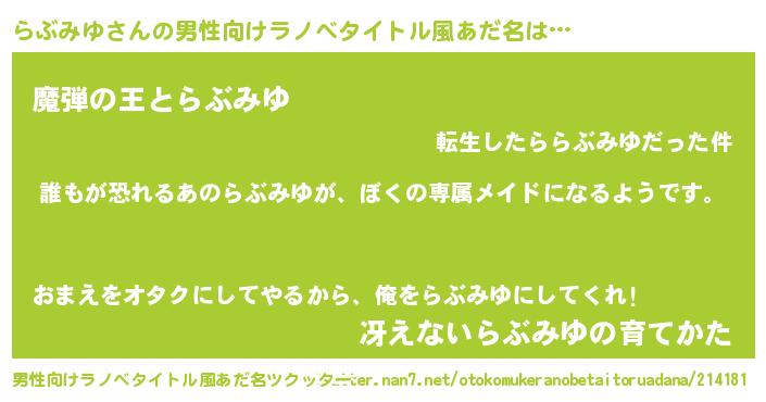 | 女子向けラノベタイトル風あだ名 | 『らぶみゆの契約王妃』 |