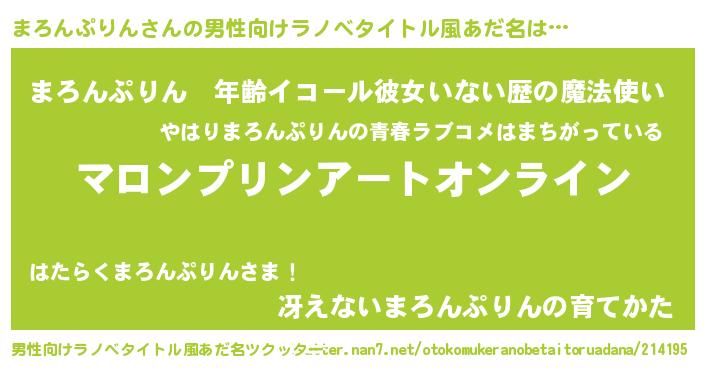 | 女子向けラノベタイトル風あだ名 | 『まろんぷりん姫と円卓の騎士』 |