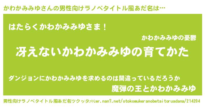 | 女子向けラノベタイトル風あだ名 | 『シンデレラかわかみみゆ家の靴箱館』 |