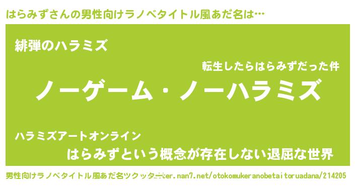 | ヘコむあだ名 | 『はらみず(震え声)』『はらにゅー』 |