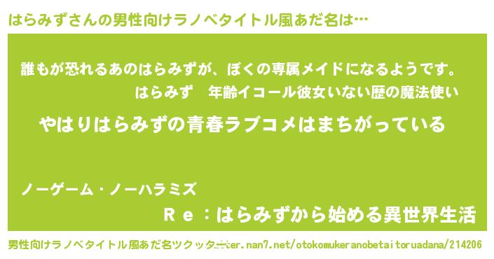| 女子向けラノベタイトル風あだ名 | 『はらみずの雑貨屋さん』 |